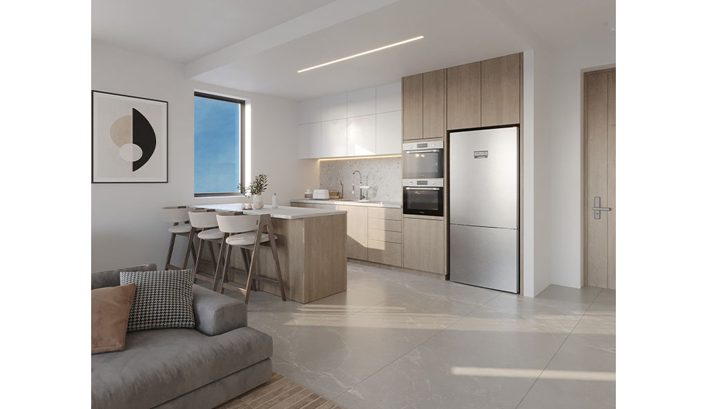 A residential block of flats development that was designed to provide open plan two-bed apartments that will have that maximum area permitted for covered verandas. The design used the circulation elements – staircase and lift- to separate the apartments in each floor for greatest privacy.