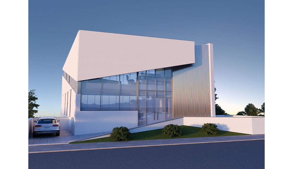 The second proposal, was to keep the glazed façade having it pushed back from the concrete structure in all three floors. The concrete structure was creating a frame in order to emphasize the continuity in all floors having sharp lines to give a dynamic form. Overhangs of the frame were used to provide more shadow to the south elevation. The roof of the proposed building was distracted in order to give a lighter sense in the overall dynamic form.